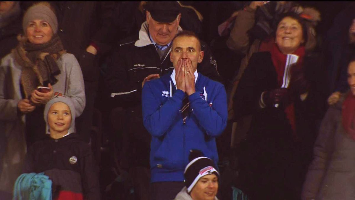- Jóhannesson, presidente de Islandia, emocionado en las gradas del estadio tras la histórica clasificación al Mundial.